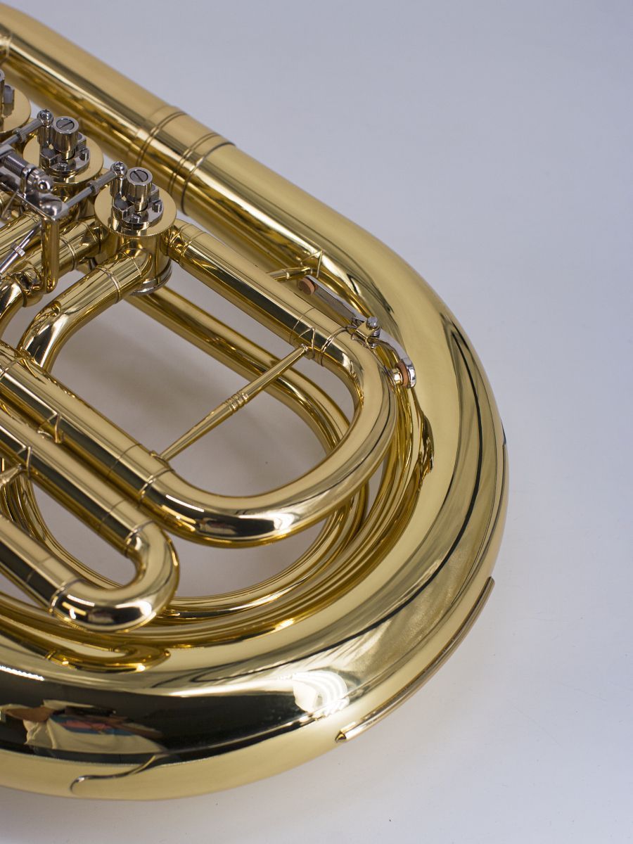 Artist EP-1110LA - профессиональный юфониум, сочетающий в себе высокое качество исполнения и отличные акустические характеристики. Инструмент изготовлен из меди, что обеспечивает богатый, насыщенный звук и длительный срок службы, а лаковое покрытие защищает инструмент от внешних воздействий и сохраняет его внешний вид. В комплект входит кейс, который защищает инструмент при транспортировке, оснащен надежной фурнитурой и имеет удобную ручку для переноски. Юфониум Artist EP-1110LA отлично подойдет как для профессиональных музыкантов, так и для учащихся музыкальных школ и колледжей.