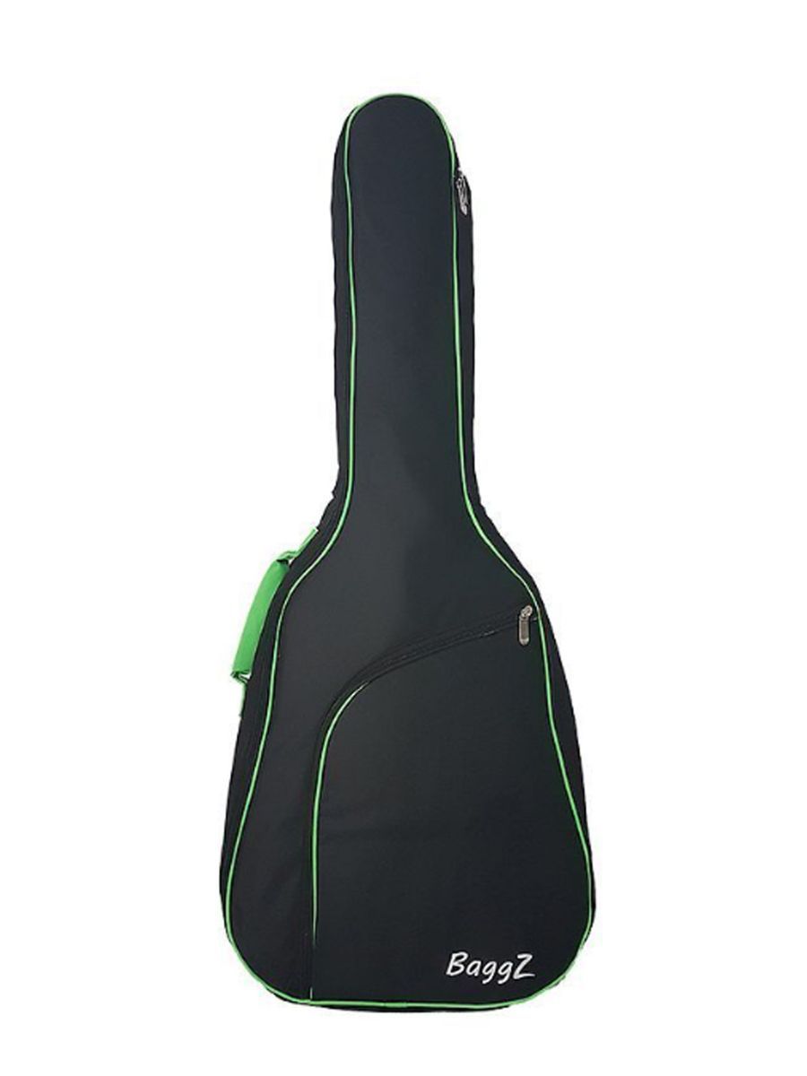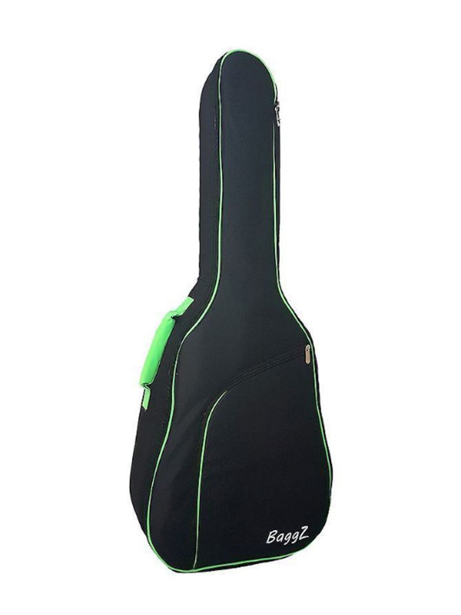 BaggZ AB-41-7GR Чехол для акустической гитары, 41", защитное уплотнение 10мм 600D, цвет черный, зеленая окантовка