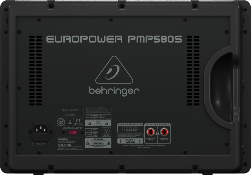 Behringer PMP580S-EU Пульт микшерный (6 моновхода, 2 стереовхода, 8 микрофонных предусилителей) со встроенным усилителем мощности 2х250 Вт/ 4 Ом, эквалайзером, процессором эффектов Klarl Technik