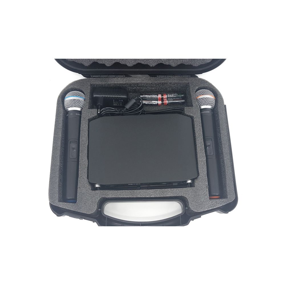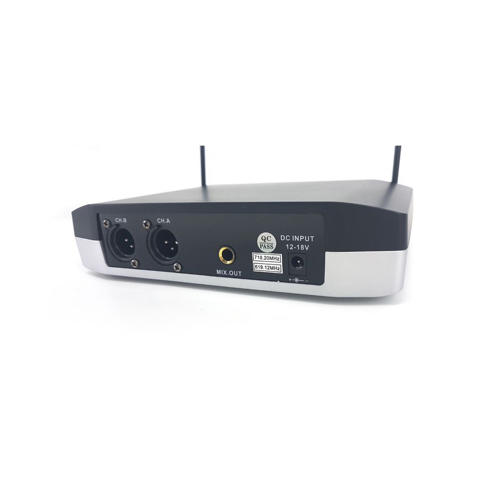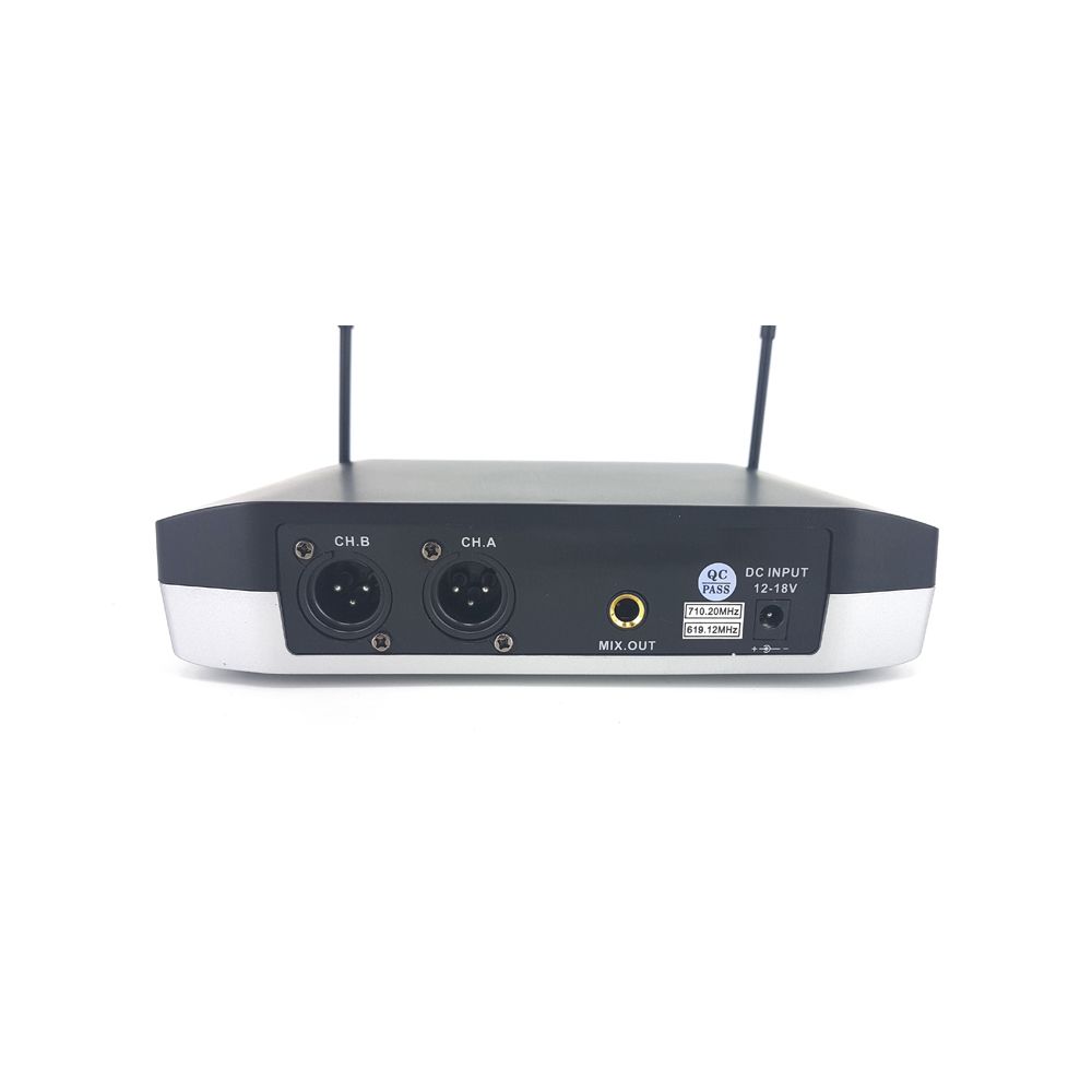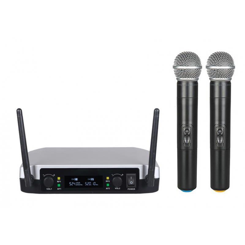 BG EU-90B Радиосистема вокальная, UHF 710.2/619.12MHz, фиксированная частота, Led дисплей, 2 ручных микрофона, 2 XLR выхода +1/4 Jack mix out