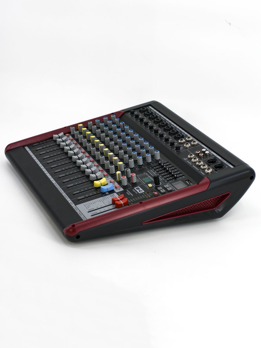 BG T102-FX представляет собой компактный 12-канальный микшерный пульт, предназначенный для профессиональных аудиоприложений. B&G – это качественное и доступное по цене профессиональное звуковое и трансляционное оборудование. Продукция бренда B&G станет идеальным вариантом для баров, ресторанов и конференц-залов. Строжайший контроль технологического процесса обеспечивает высококачественное звучание и безупречную надежность оборудования. Особенности модели: – 12 каналов – LR основной микс – 2 Aux отправления – запись – 2 группы входа стереоканала – 60-миллиметровые пыленепроницаемые фейдеры – 2-трековый мониторинг и воспроизведение в LR – наушники и выходы локального монитора – выделенные стерео, высоковольтные мониторы – сбалансированные XLR-выходы с возможностью привода + 26 дБн – сверхмалошумящий микшерный усилитель – 7-полосный графический эквалайзер – 16-режимный процессор с регулируемыми параметрами DSP – металлические гнезда, позолоченные XLR, герметичные потенциометры и переключатели – встроенный источник питания SMPS