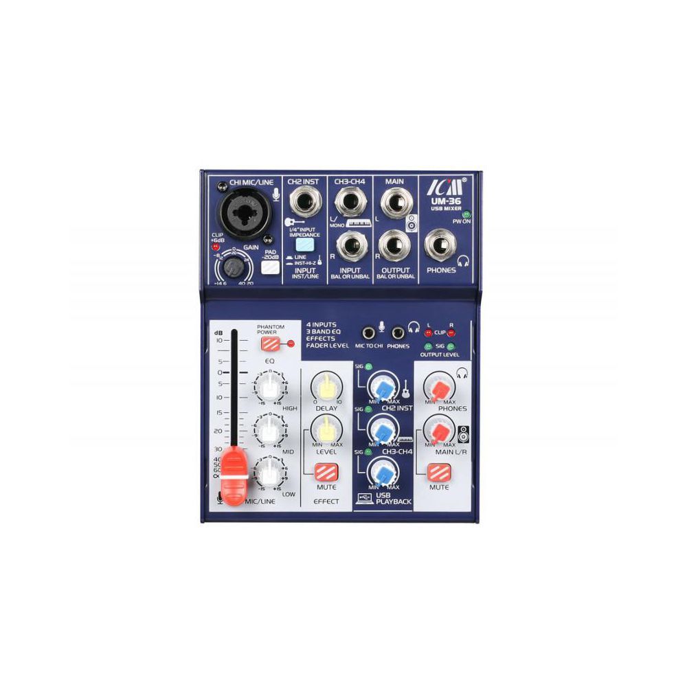 BG UM-36 – это качественный микшерный пульт по привлекательной цене. BG – это качественное и доступное по цене профессиональное звуковое и трансляционное оборудование. Продукция бренда BG станет идеальным вариантом для баров, ресторанов и конференц-залов. Строжайший контроль технологического процесса обеспечивает высококачественное звучание и безупречную надежность оборудования. Особенности модели: – 2 монофонических входа – 1 стереофонический вход – процессор эффектов – питание через USB-интерфейс – совместимость с USB Audio Class 2.0 Компактный дизайн позволяет легко транспортировать консоль. Микшер отличается доступными настройками и удобным интерфейсом. Питание BG UM-36 происходит через USB-интерфейс. BG UM-36 – недорогой и удобный в работе микшерный пульт, который станет отличным вариантом для аудиостудий, конференц-залов и выездных инсталляций.