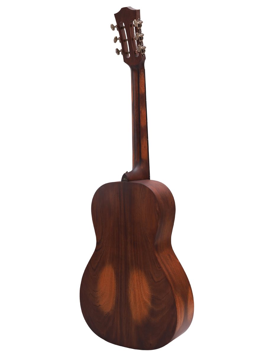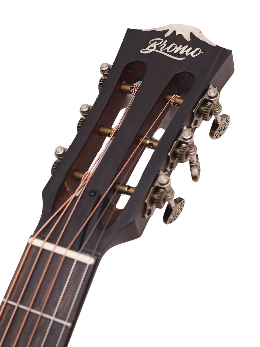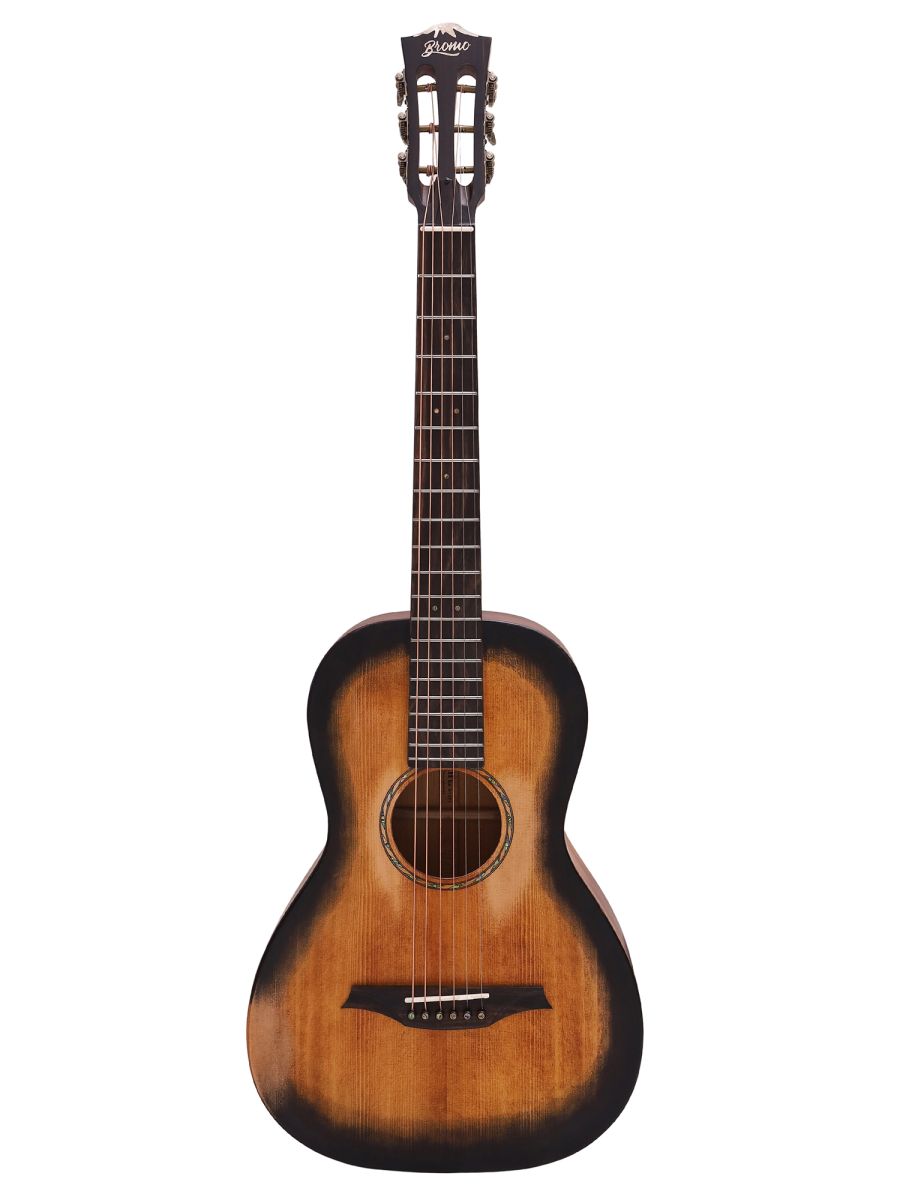 Bromo BAR6H hs Гитара акустическая Parlor, верхняя дека: цельная ель, нижняя дека и обечайка: цельный махагони, гриф: махагони с двумя эбеновыми вставками, накладка грифа: макассарский эбен, двухсторонний анкер, колки: винтажные "Bromo" античная латунь, матовая, в чехле