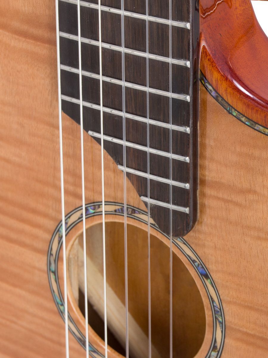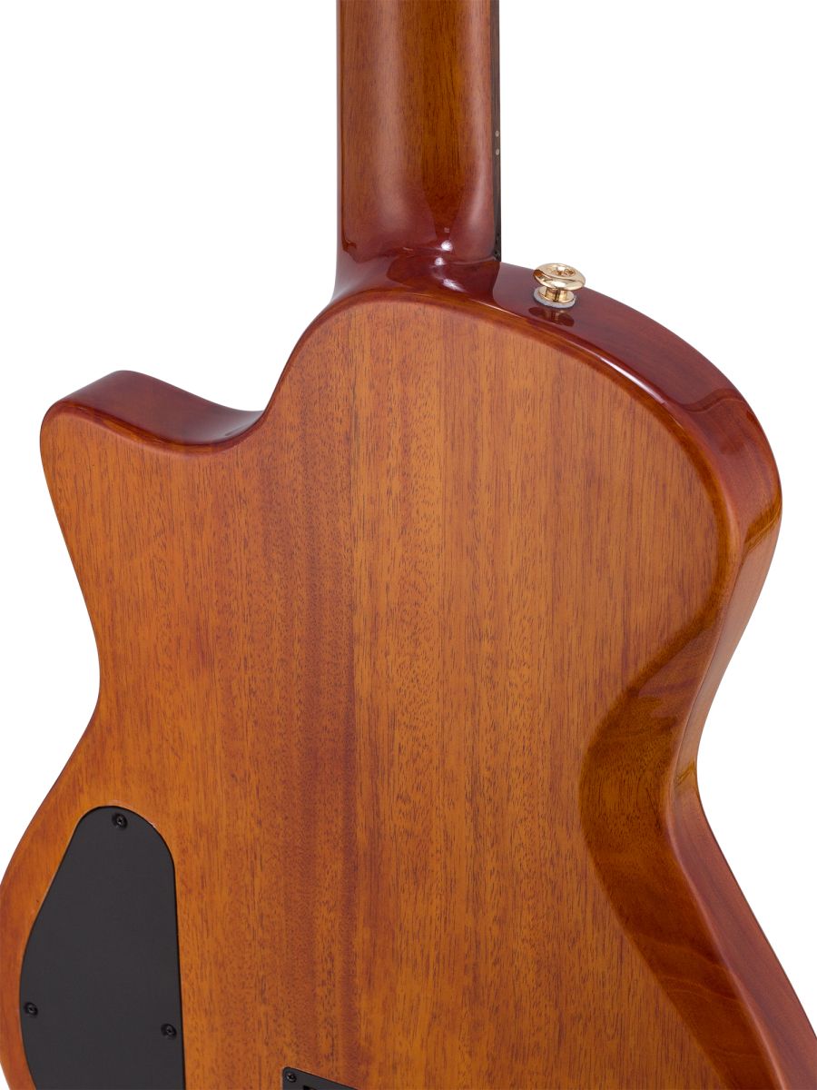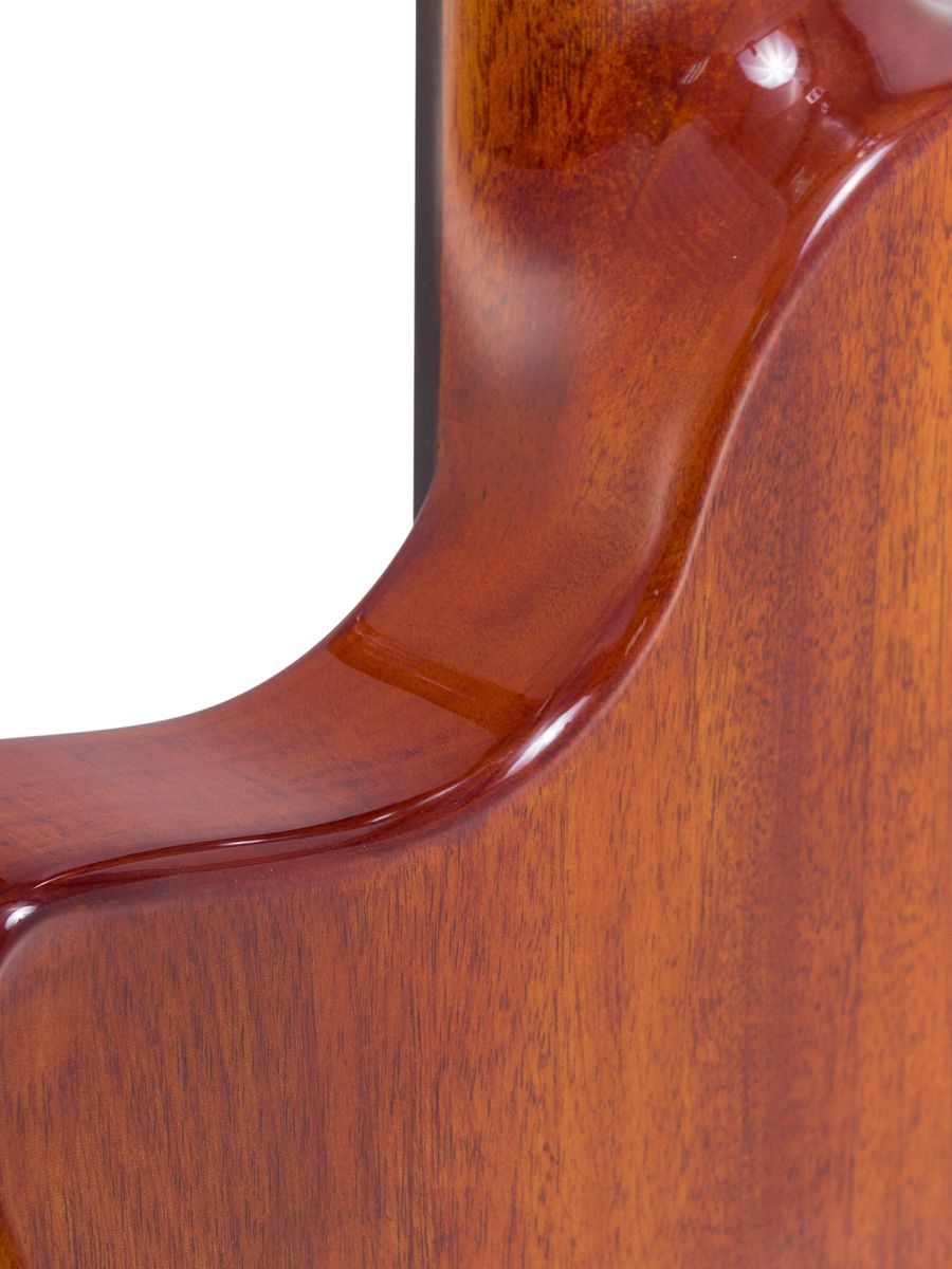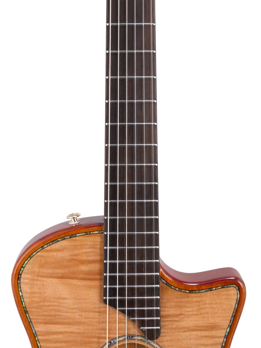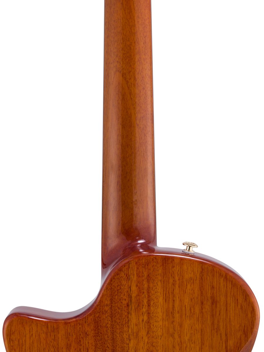 Серия: Fusion Craft Форма корпуса: Hollow Body with Cutaway Мензура: 650 мм (25 19/32”) Ширина грифа на нулевом ладу: 48 мм (1 57/64”) Ширина порожка: 45 мм (1 49/64") Корпус: махагони Верхняя дека: ель с шпоном из огненного окуме класса 5A Гриф / накладка грифа: махагони / макассарский эбен Анкерный стержень: двухсторонний Лого на голове: гора Бромо, перламутр Оформление резонаторного отверстия: «Ковбойская веревка» Бридж: "Орлиное крыло", черное дерево Amara Лады: 22 Верхний и нижний порожки: кость Колки: винтажные "Mt. Bromo", позолоченные Электроника: пьезодатчик + 3-позиционный звукосниматель под струнодержателем Отделка: глянцевый лак Цвет: Natural В комплекте: утепленный жесткий кейс