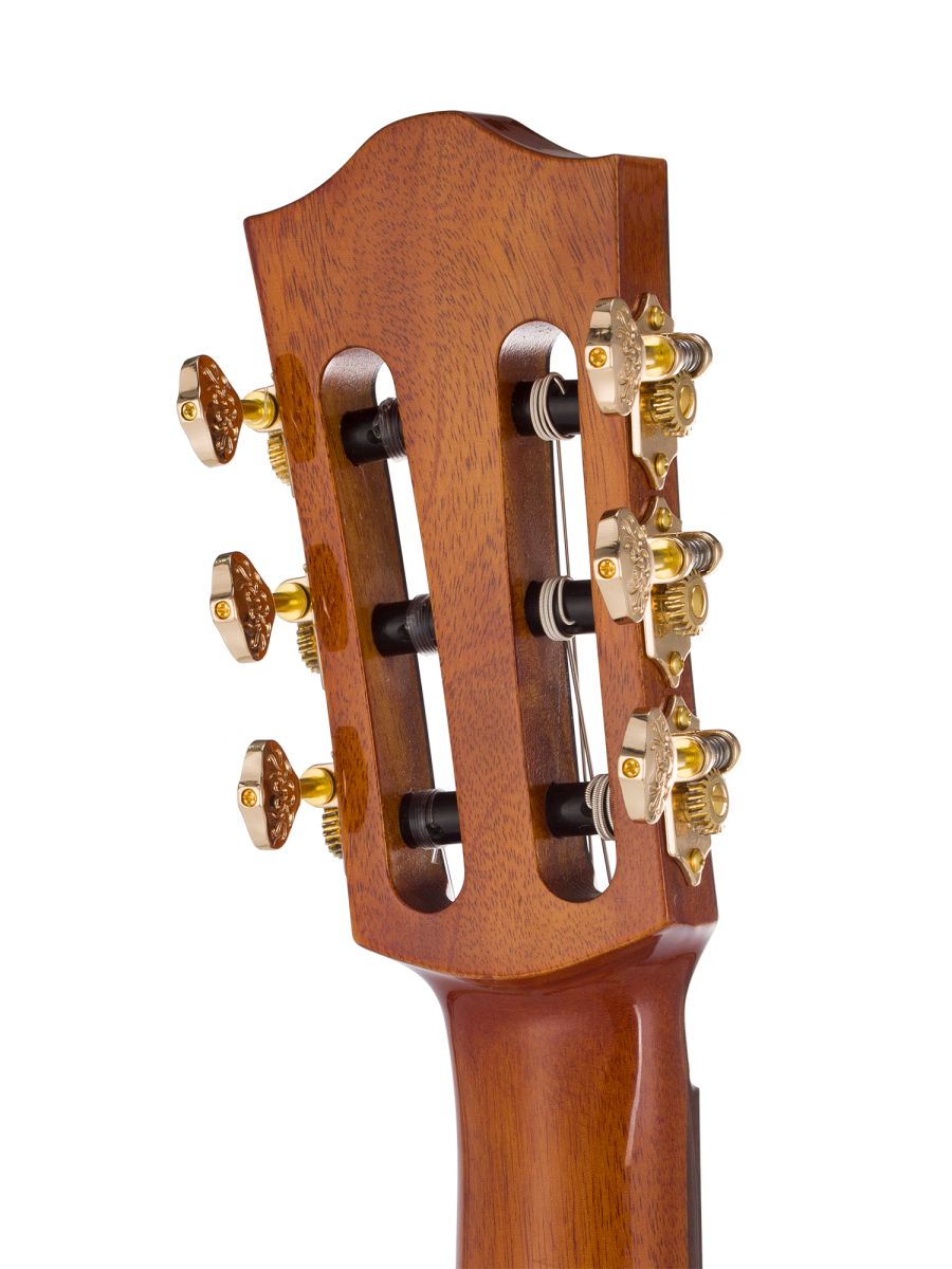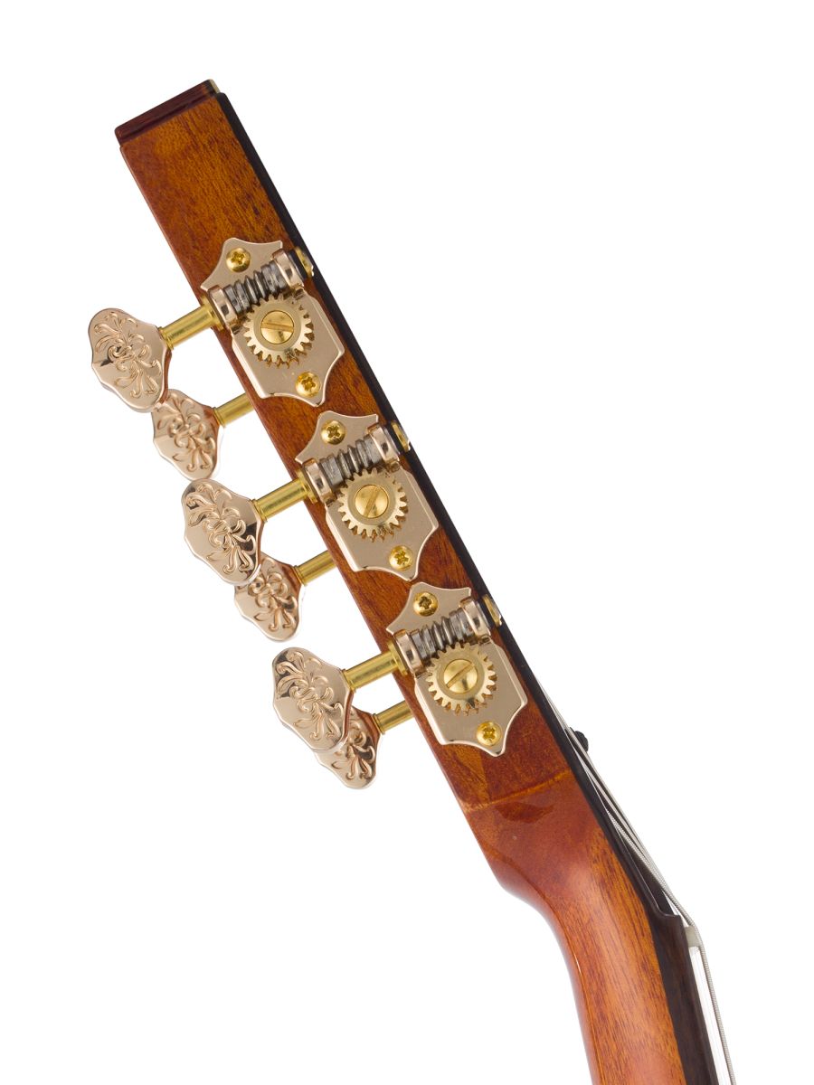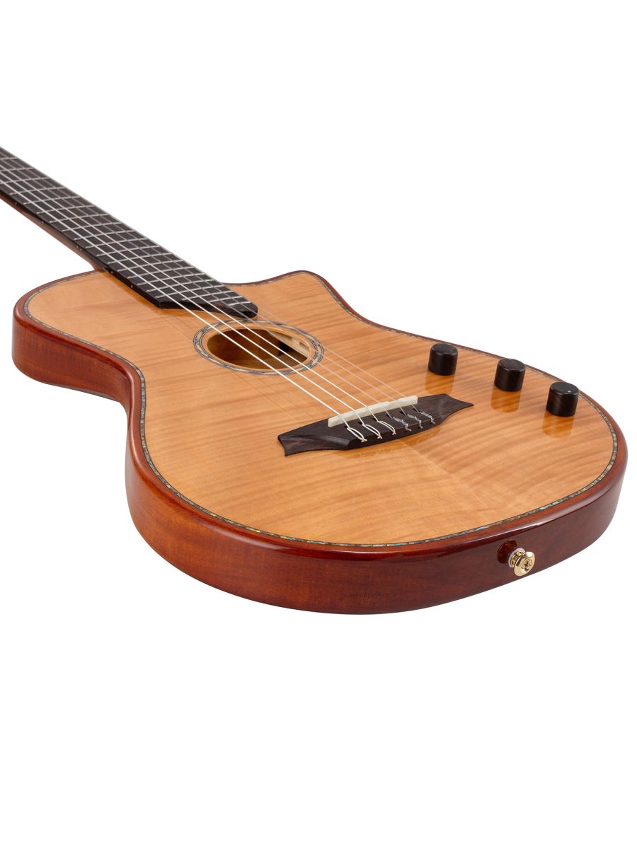 Bromo BEN2C Гитара полуакустическая с нейлоновыми струнами, корпус: махагони, верхняя дека: ель с шпоном из огненного окуме класса 5A, гриф: махагони, накладка грифа: макассарский эбен, двухсторонний анкер, колки: винтажные, «Mt. Bromo» позолоченные, электроника: пьезодатчик + 3-позиционный звукосниматель под струнодержателем, глянцевый лак, цвет: Natural, в утепленном жестком кейсе