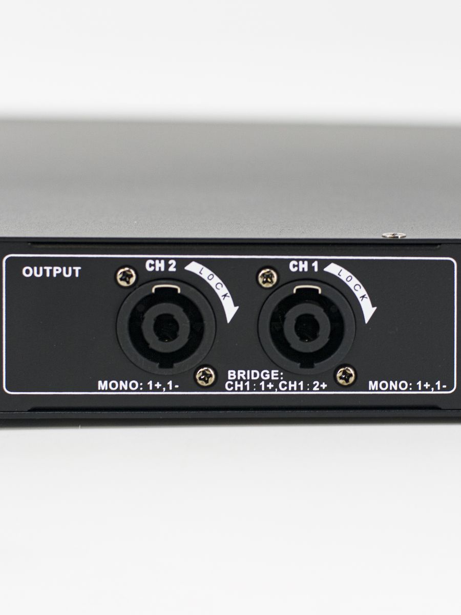 Описание модели: усилитель мощности двухканальный Класс: D Мощность RMS/Пик (4 Ом): 2х600 Вт Мощность RMS/Пик (8 Ом): 2х400 Вт Частотный диапазон: 20-20000 Гц Соотношение сигнал/шум: >105 дБ Входное сопротивление: 20 кОм (балансный), 10 кОм (небалансный) Перекрестные помехи: >75дБ Разъемы: вход XLR, 1В, 20 кОм (балансный), 10 кОм (небалансный) Источник питания: AC 100~240 В, 50/60 Гц Размеры (ШxВxГ): 484×375×44 мм
