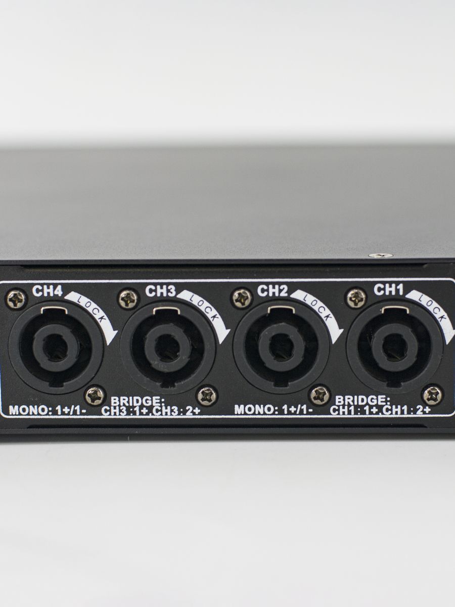 Класс: D Мощность RMS/Пик (4 Ом): 4х350 Вт Мощность RMS/Пик (8 Ом): 4х200 Вт Частотный диапазон, Гц: 20-20000 Соотношение сигнал/шум: >105 дБ Источник питания: AC 100~240 В, 50/60 Гц Размер (ШxВxГ): 484×375×45 мм Вес: 8.5 кг