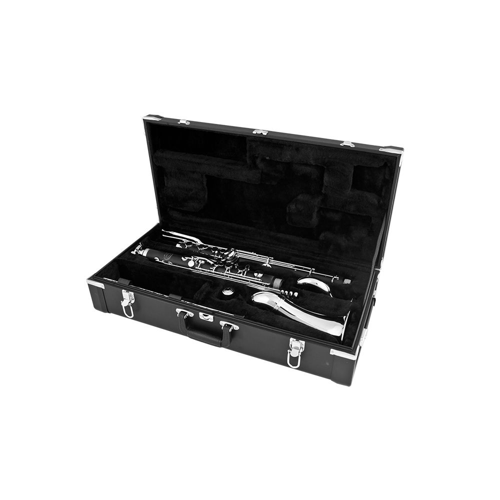 Jupiter JBC1000S Кларнет бас Bb, A= 442Hz, корпус - пластик с металлическими кольцами, эска, раструб и механика - посеребренный нейзильбер, нижний Eb, кейс JKC-BC45PA