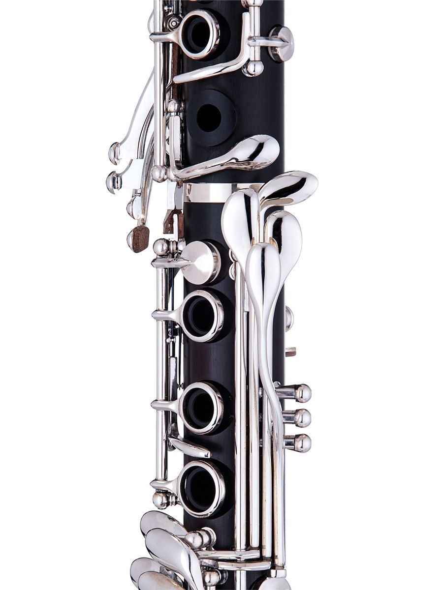 Строй: Bb Корпус: отборное Гренадильное дерево Система: 18 клапанов, 6 колец Полицилиндрическая мензура 14,65 мм Длина бочонка, мм: 64 мм + 65 мм Раструб: A=442/A=443, без металического кольца Упор для большого пальца: регулируемый, с кольцом В комплекте: мундштук, облегченный кейс JKC-CL33FU