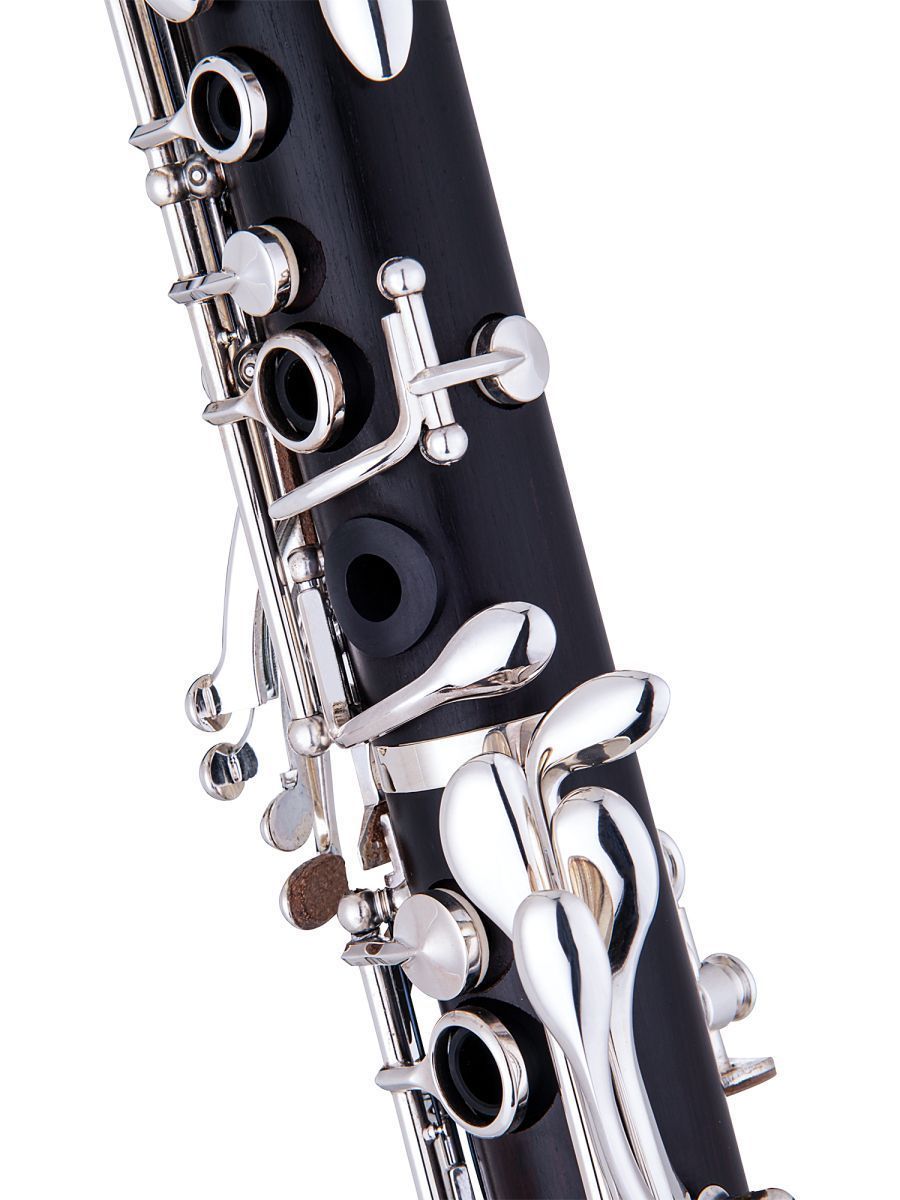 Jupiter JCL1100DSQ Кларнет Bb, корпус отборное гренадильное дерево, A=443Hz и A=442Hz, 2 бочонка 64мм и 65мм, 18 клапанов, 6 колец, рычаг Eb, регулируемый упор с кольцом для большого пальца, механика - посеребренный нейзильбер, облегченный кейс JKC-CL33FU
