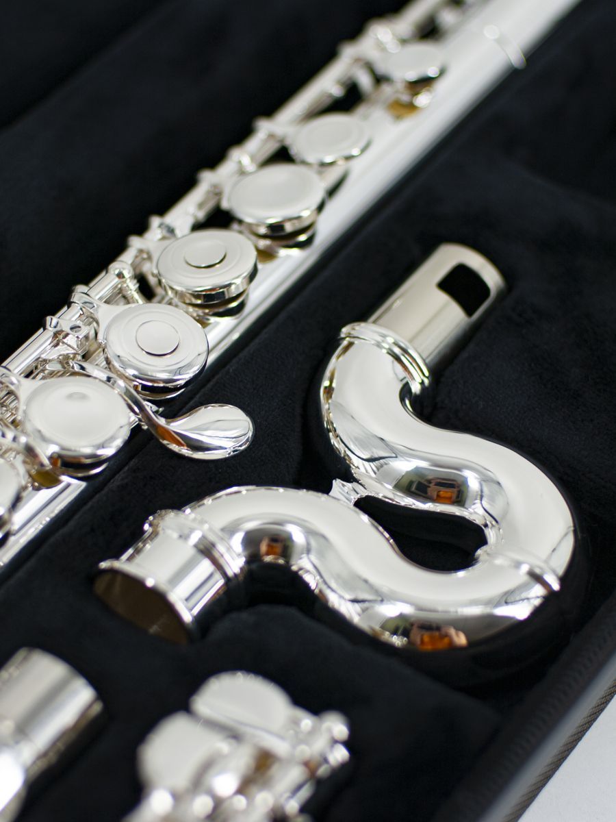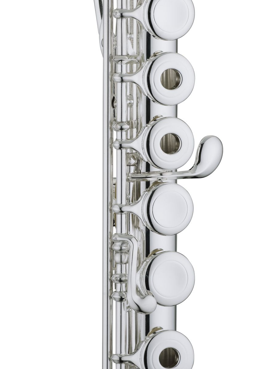 Jupiter JFL-700WRE Флейта С, открытые клапаны с металлическими заглушками не в линию, серебряное покрытие корпуса, головки и колена, каплеобразная головка WAVE-LINE, с Е механизмом