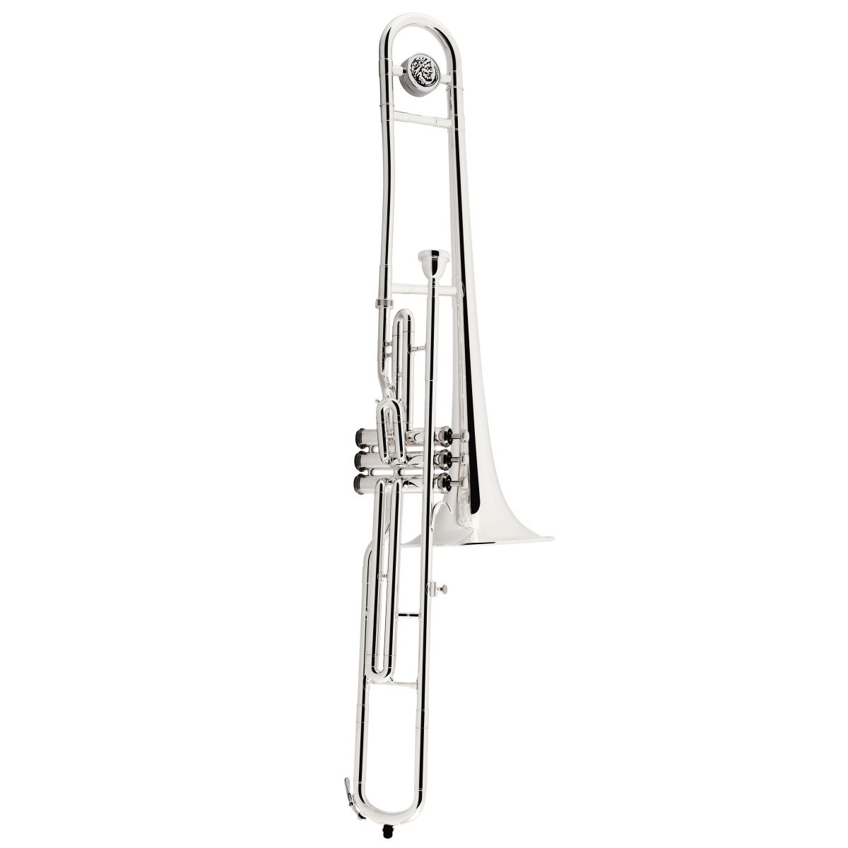 Серия: 700 Строй: C Раструб: 203 мм Мензура: 12,25 мм Корпус: латунь Кулиса и вентили: мельхиор Покрытие: посеребренный В комплекте: жесткий кейс