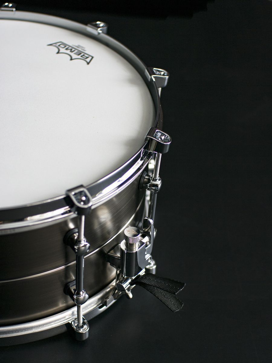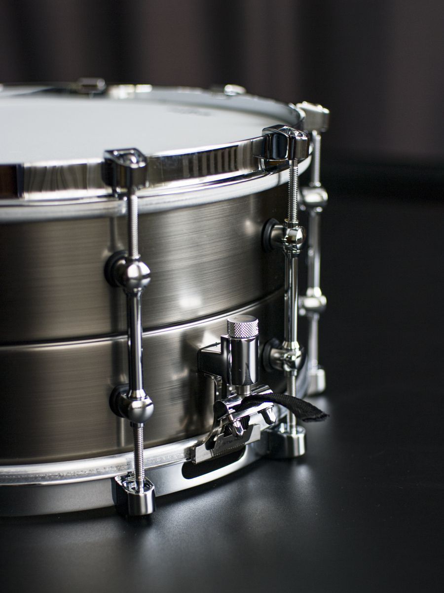 Размер: 14” x 6,5” Корпус: латунь (1,2 мм) Фурнитура корпуса: хромированная Кромка: внутренний острый угол 45° (с обеих сторон) Отделка: матовый античный никель Обод: однофланцевый (латунь) Верхний пластик: Remo Diplomat с покрытием Резонансный пластик: Remo Diplomat Hazy (сторона малого барабана) Сетчатый фильтр: OP-01 Подструнник: ST16-1403 без покрытия из нержавеющей стали (4) 0,6 мм и (10) 0,8 мм и (2) 1,0 мм Модификатор частоты: PFM1465