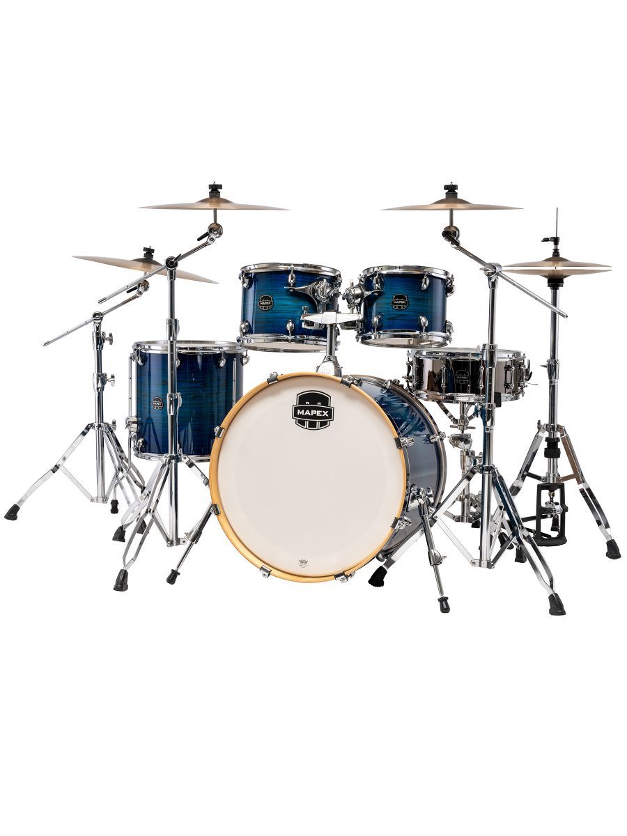 Серия: Armory Корпус: клен/береза, 8 слоев, толщина 7,55 мм Система крепления томов : SONIClear™ Пластики: Remo UC Double-ply Clear Batter, UX Clear Bottom для подвесных томов Remo UT Пластики: Clear Batter head(with dampeningring), UC Coated Reso Head для бас-барабана Ножки напольного тома: SONIClear™ Цвет: Blue Wave Burst * Набор стоек, педаль и стул не включены в комплект. ** Для комплектации ударной установки рекомендуем использовать хардваер Mapex 800 серии или комплект стоек с педалью Mapex HP8005