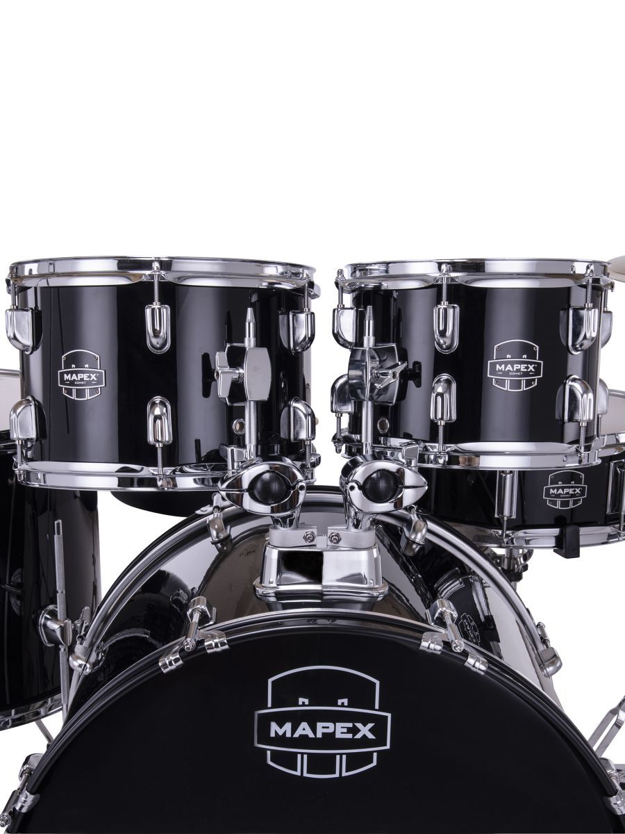 Mapex CM5295FTCDK Ударная установка из 5-ти барабанов, Comet series: BD2216, TT1007, TT1208, FT1614, SD1450, педаль P250, стойки: H250, C250, B250, S250, стул T400, тарелки 14" HIHAT +16" CRASH + 20" RIDE, цвет Dark Black
