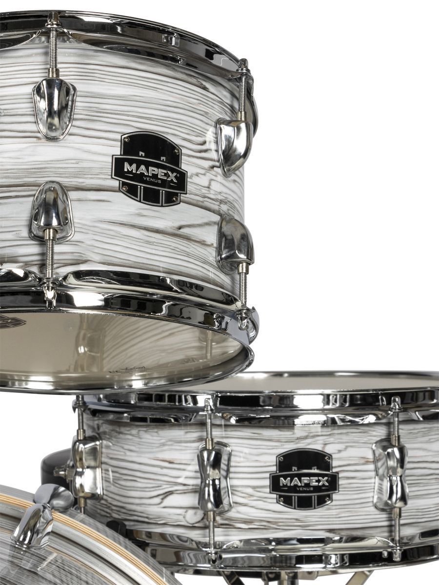 Серия: Venus Limited Edition Корпус: тополь, 9 слоев, толщина 7,2 мм Система крепления томов: SONIClear Пластики: Remo UC Фурнитура: хром Покрытие корпусов: White Marblewood