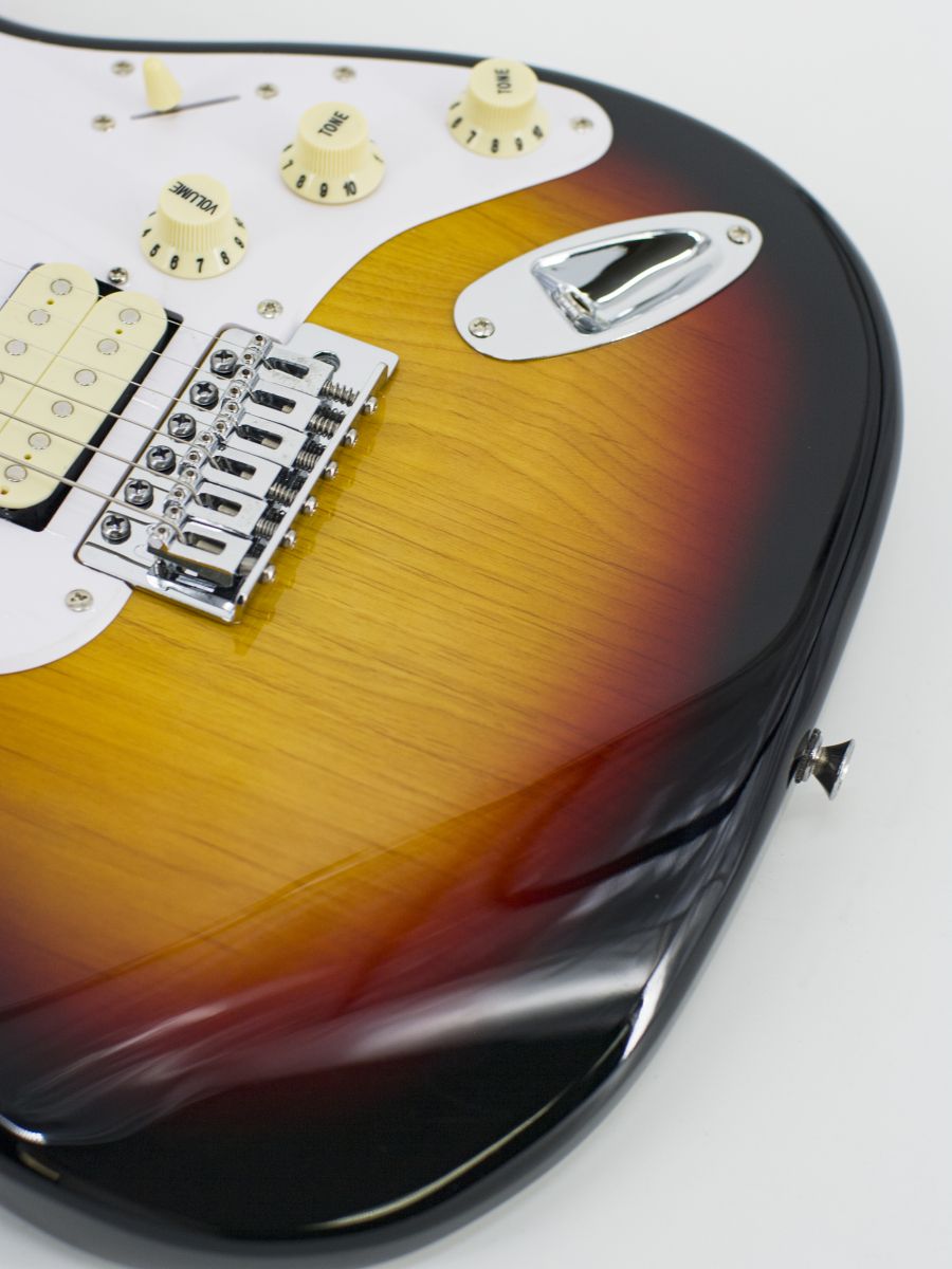 Конструкция: stratocaster Мензура: 648 мм Ширина верхнего порожка: 42 мм Материал корпуса: липа Гриф / накладка грифа: отборный канадский клён / отборный канадский клён Лады: 21 Колки: хром Звукосниматели: H-S-H Регуляторы: 2 тона, 1 громкость, 5-позиционный переключатель Машинка: Vintage Цвет корпуса: 3 Tone Sunburst Страна-производитель: Китай