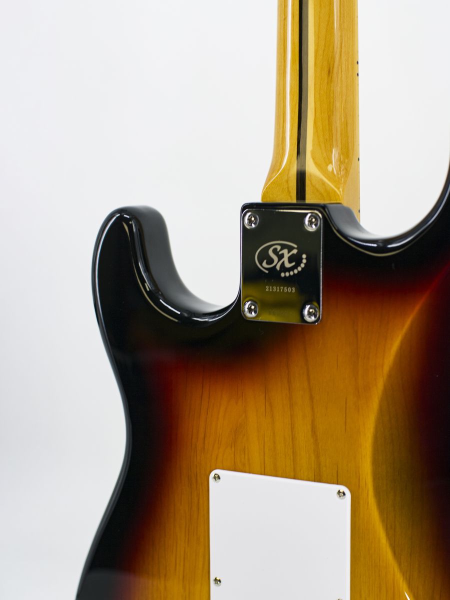 SX SST57+/HSH/3TS Электрогитара, стратокастер, корпус: липа, гриф: отборный канадский клён, накладка: отборный канадский клён, 21 лад, колки: хром, звукосниматели: H-S-H, контроллеры: 1 громкость, 2 тона, 5-позиционный переключатель, машинка: Vintage, цвет: 3 Tone Sunburst
