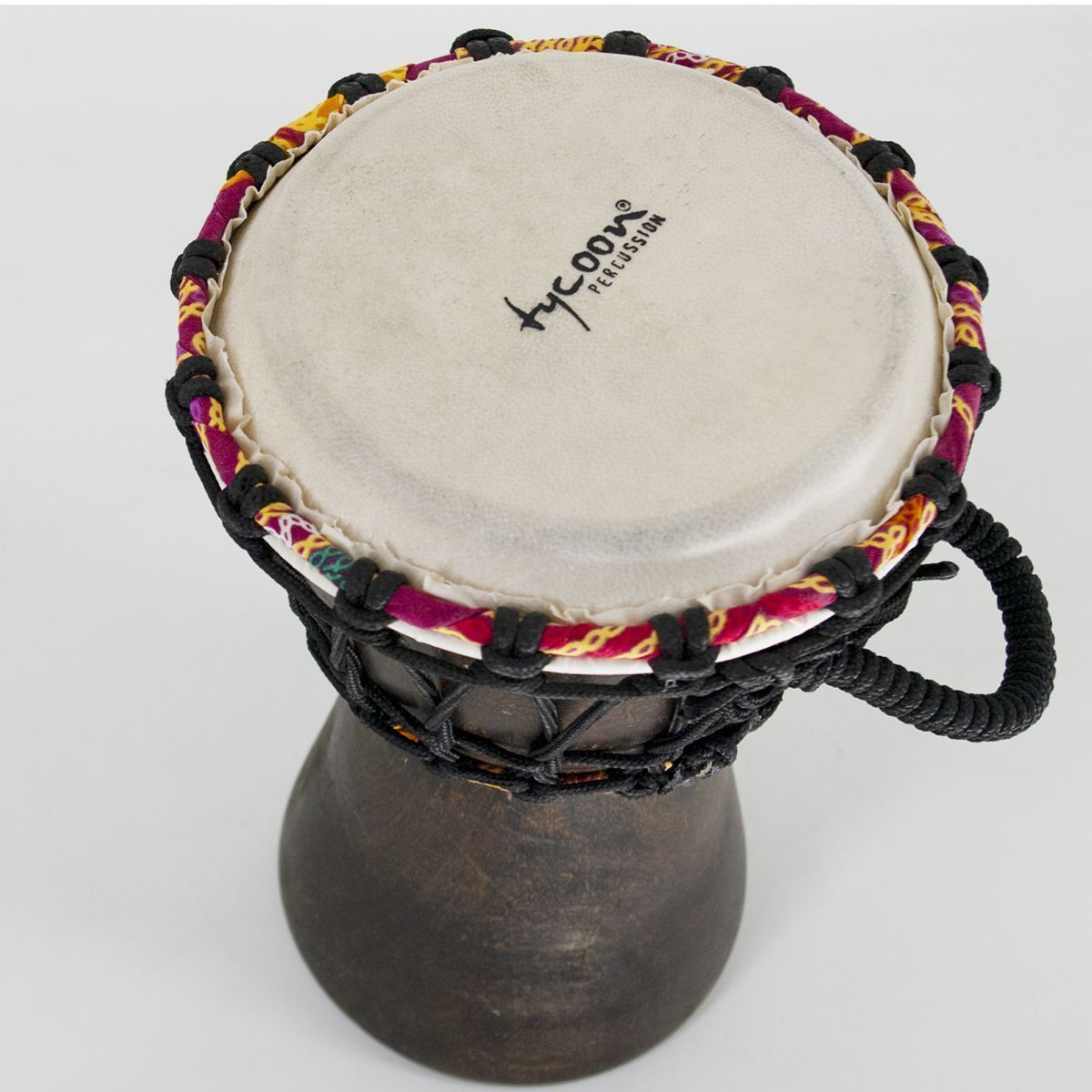 Tycoon TAJ-6 – африканский джембе 6". Сделан из красного африканского дерева, высушенного естественным образом на солнце. Мембрана из козьей кожи. Прочная нетянущаяся веревка для настройки обеспечивает стабильный строй. Уцененный выставочный экземпляр.